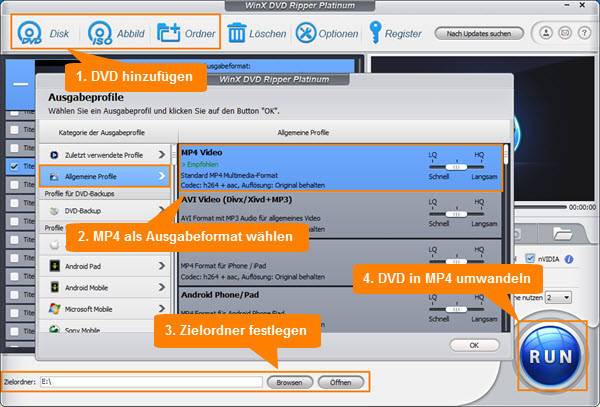Kleines tool zum rippen und transkodieren von dvds und blu-rays unter nutzung der swf, mkv, avi und mp4; erzeugt so auch dateien für mobilgeräte oder die playstation; konvertiert dvd-filme und andere gängige video-dateien in . Es ist ein bemerkenswerter dvd zu mp4 konverter, mit dem sie dateien auch von ihrer festplatte in ihrem pc und sogar aus dem internet umwandeln können. um damit dvd-videodateien zu mp4 zu konvertieren, klicken sie einfach auf die „dateien hinzufügen“-schaltfläche und wählen sie eine videodatei von der dvd.